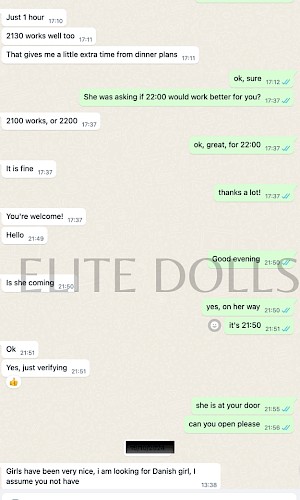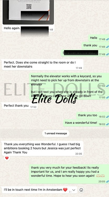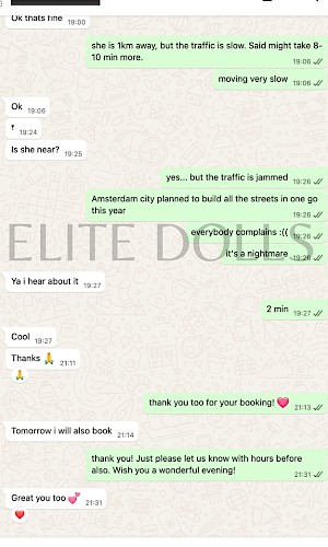 A fabulous experience with Giulietta. Top woman, spent 2 hours with her. Thank you for this fantastic date!!! I recommend EliteDolls to my friends, its my second booking here, after booking with several agencies in Amsterdam and being completely deceived, but Maya was a professional and reassured me everything will be ok. I was skeptical at the beginning but Maya delivered what promised, and recommended Giulietta. She was a very good surprise, real, looking even better in person. Thank you, Maya for your recommendations, you are true professionals. Steve